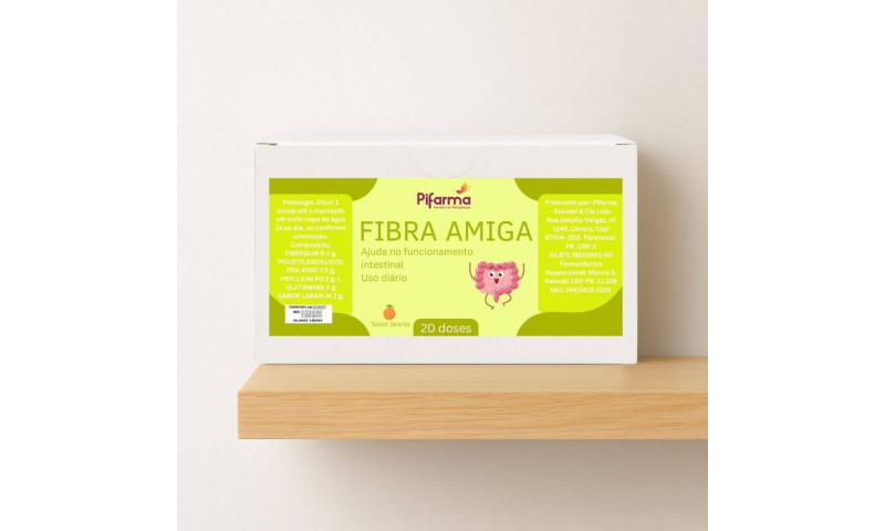 Fibra Amiga é uma fórmula completa desenvolvida para promover a saúde intestinal, regularizar o trânsito e melhorar o conforto digestivo. Sua composição combina fibras solúveis e insolúveis, prebióticos, L-glutamina e PEG 4000, que atuam em conjunto para melhorar a formação do bolo fecal, equilibrar a flora intestinal e favorecer o bem-estar digestivo. Ideal para quem busca regularidade de forma suave, eficaz e segura.
